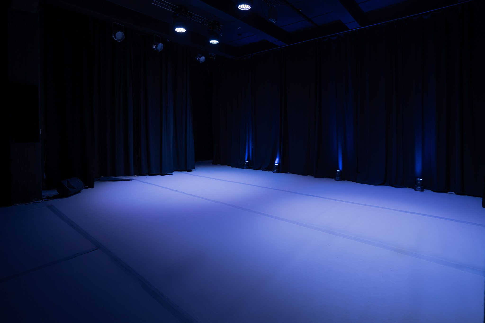 Przestrzeń teatralna w Dawnej Pralni przeznaczona jest dla widowni do 100 osób. Scena położona jest na poziomie zero z pierwszymi rzędami widzów, wyłożona szarą lub czarną podłogą baletową. Dysponujemy 4 ruchomymi sztankietami sterowanymi zdalnie. Zainstalowana aksamitna, czarna, elektryczna kurtyna rozsuwana na boki. Profesjonalne zaplecze techniczne – oświetlenie oraz nagłośnienie sceniczne wraz z wyposażeniem multimedialnym.
